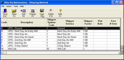 Do not delete any of the UPS shipping codes. Do not change the Code, Description, or Shipper Service fields in these codes.