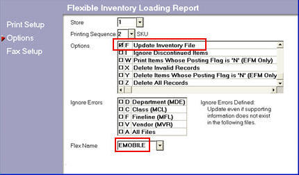 In the Options field, select F (finalize), and in the Flex Name field, select EMOBILE.