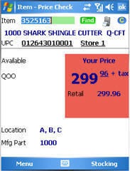 With the exception of the Price Check and Update screens, the various Eagle Mobile Inventory screens are abbreviated versions of the corresponding screens in Eagle for Windows. The item information that displays on your Eagle Mobile is actual live data from Inventory Maintenance.