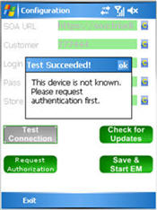 Tap Test Connection. When you receive the message "This device is not known. Please request authentication first," tap OK.