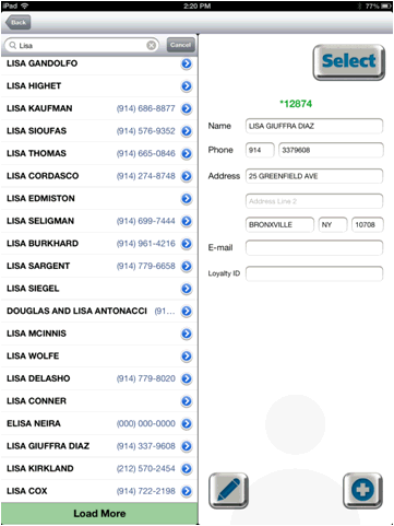 Type something in the Search field to being your search. A list will display of information matching who you want to look up. You can look up customers by Name, Loyalty ID, and Phone Number.