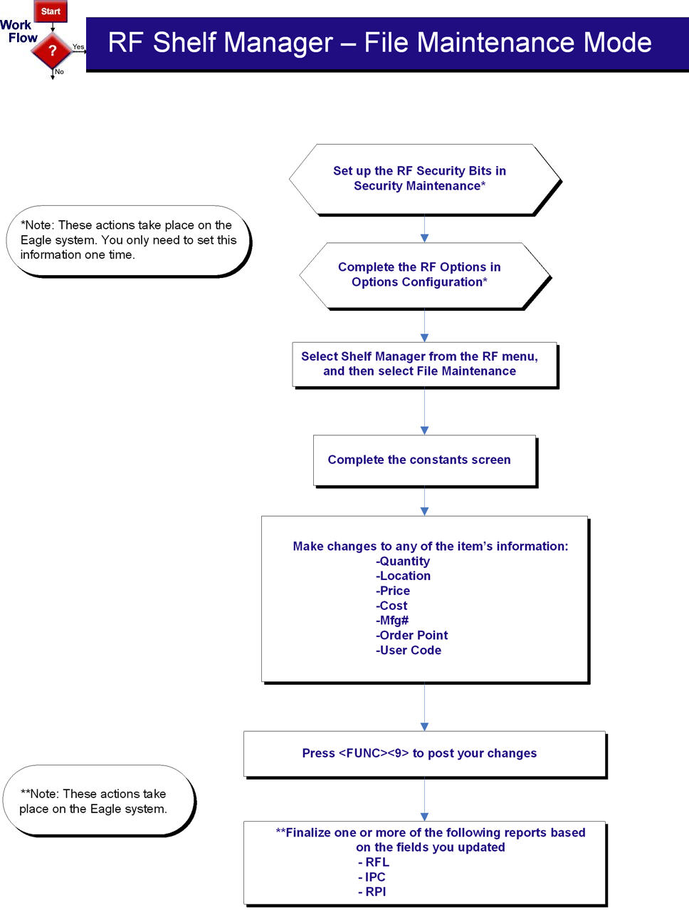 For more information about the Shelf Manager File Maintenance Mode, see the RF User's Guide, document EL2104, available at www.epicor.com.