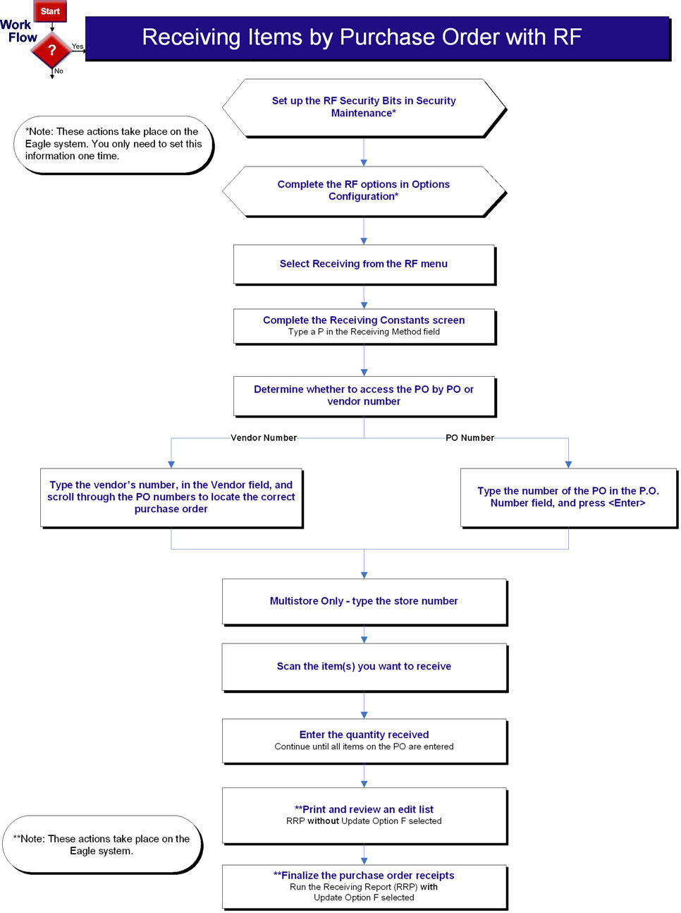 For more information about receiving items by purchase order number, see the RF User's Guide, document EL2104, available at www.epicor.com.