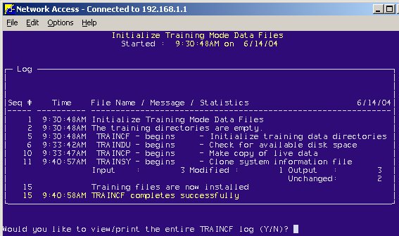 - At Selection, type TRAINCF and press Enter. The following screen displays: