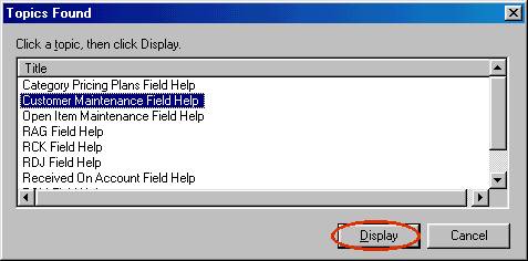 In the Topics Found box that displays, select the specific field help you want, and click Display.