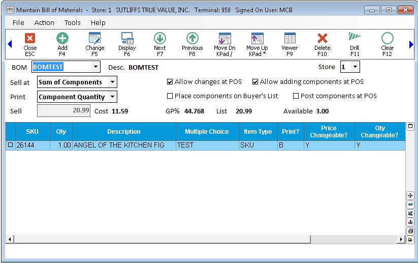 In the BOM (SKU) field, type the SKU of the BOM header you want to modify, and press ENTER. The BOM header and its components display.