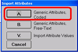Create a CSV file containing the following columns of information: Attribute Code (the attribute for which you are adding values-- A1, A2, etc.), Value Code, Value Description, and Comment.