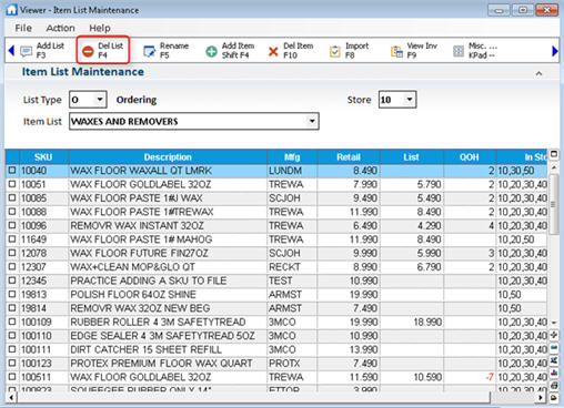 In the ItemPart List field, select the ItemPart List you want to delete, and press Enter. The list displays in the grid.