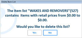 Click Delete List. A confirmation window displays. Click Yes to continue and delete the list. Click No to return to the viewer.
