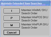 Repeat step 3 for the other two search types, P - Maintain WinPOS SKU Search Order, and then M - Maintain WinPUR SKU Search Order.