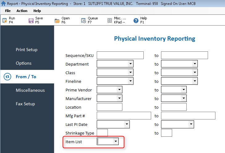 If you leave the From/To fields blank, the system will load your entire inventory into the count file.