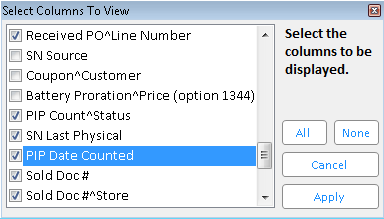 PIP Date Counted – This date is updated when the Count is applied to PIP from the Serial Number Viewer (Misc menu choice Apply Counts to PIP).