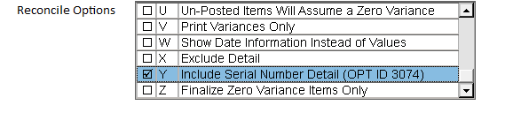 tab and check the Reconcile options S – Show Detail, Y – Include Serial