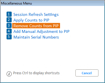 If using Reconcile Option R – Remove Items without updating - this will also reset the count status and PIP Date Counted to blank for those serialized items to remove the counts in the Serial Number Viewer (SNV).