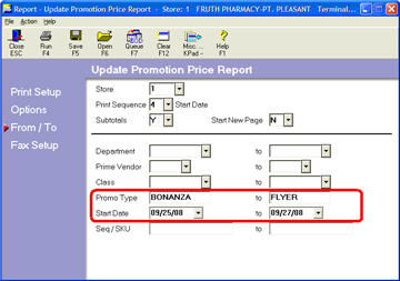 Note: The other fields in the RUP From/To area (Dept, Prime Vendor, Class, and Seq/SKU) do not apply to Dynamic Promotions.
