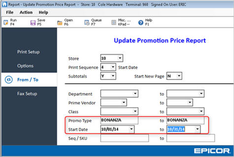 You must run the Update Promotion Price (RUP) Report with Option F (Finalize) in order for Dynamic Promotions to be processed. When you use Option F, information entered in the From/To section determines which Dynamic Promotions are included.