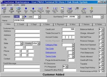 If you want the name to be sorted by the customer's last name, type DOE, JOHN. If you want the name to be sorted by the customer's first name, type JOHN DOE.