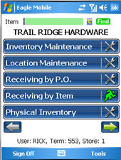 From the Eagle Mobile Applications Menu, select Inventory Maintenance.