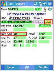 Position the cursor in the “New Ord.” field and type the quantity to be ordered.