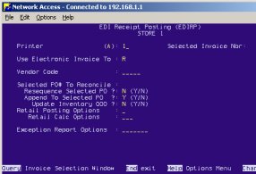 to display the EDI Receipt Posting (EDIRP) screen.