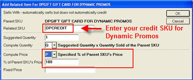 In the Related SKU field, enter a credit SKU for Dynamic Promotions