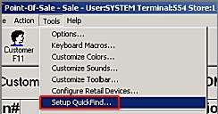 Access the Quickfind grid From the Eagle Browser, click POS. From the Tools menu, click Setup QuickFind. |