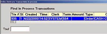 When trying to recall an estimate, bid, order, special order, or store transfer in POS, a message may display indicating that the transaction is in use or in process and to try later. This job aid explains what to do if the message displays. You must have security bit 593 to execute this procedure. POS uses a flag (an indicator in the POS programs) that tells the system if a transaction is available. The flag is correctly set to "not available" when another terminal recalls and is updating the transaction, or the system is updating other files associated with the transaction (such as the Customer File and Inventory File). However, the flag can be incorrectly set to "not available" when the power to a terminal is interrupted, a transaction was printing and is aborted or the power is interrupted, or the system stops processing the transaction. |