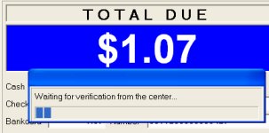 After entering the code, a progress bar briefly displays on the POS Screen. After authorization has been received, the message Approved displays on the debit pad.