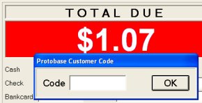 On the POS screen, the system displays the total amount of the refund and a dialog box prompting for the Protobase Customer Code. In the box, enter the last four digits of the credit card number.