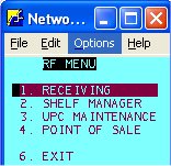 These options can also be set up in Options Configuration, so that you don't have to enter them every time you use RF Shelf Manager. Once you've set them up in Options Configuration, simply press <Next Screen> to bypass these options in Shelf Manager. |