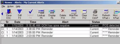 This job aid reviews how to display alerts. The ability to display alerts and how long alerts stay current depends on how you set up alerts in Options Configuration. Once alerts are no longer current, you must use the Alerts Viewer to view them. |