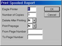 Spooled reports are automatically saved by the system for 10 days. If a report is printed, it is only saved for five days. These tasks are performed from Eagle Browser. |