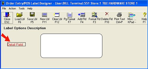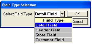 Depending on what type of field you want to add to the label design, select Detail Field, Header Field, Store Field, or Customer Field.