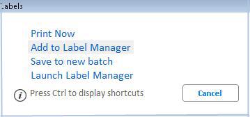 Print Labels Using "Add to Label Manager"