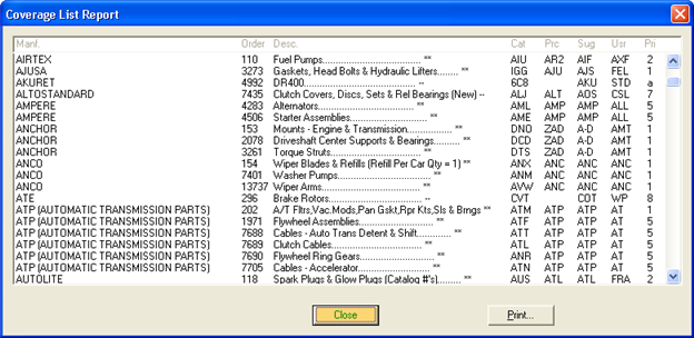 Click the Report... button on the Setup Coverages dialog of the Supplier Maintenance Wizard to view the Coverage List Report.