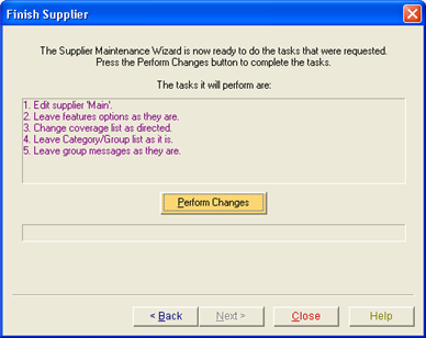Continue through the Supplier Maintenance Wizard until you reach the Finish Supplier dialog box.