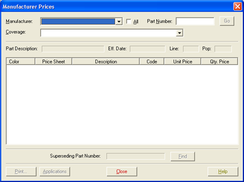 You can use the Manufacturers Prices dialog box to look up the manufacturer's price on a part that isn't in PartExpert or Interchange.