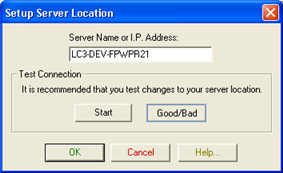 Use Server Setup to specify a different server and test your server connection. To open Server Setup, select Setup>Server Location from the main LaserCat 3 window.