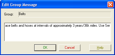 Group Messages Setup displays a list of part groups and their associated messages.