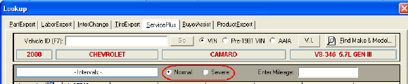 When looking up service intervals for a vehicle in ServicePlus, you must first specify a vehicle using the YMME, VIN, or AAIA methods.