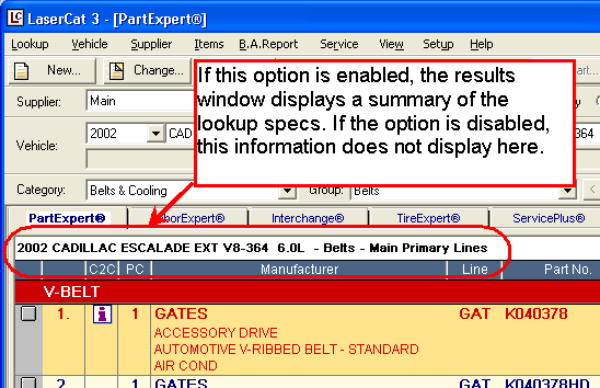 Adds a single line directly above the main parts display list that shows the lookup information.
