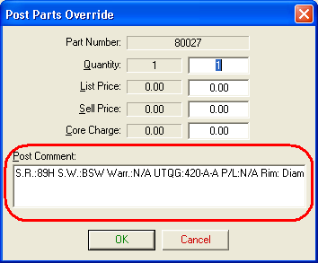 Enabling this check box makes the tire data display in the shopping cart as a comment.