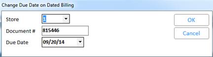 Enter the document number you want to modify (if you displayed the document in step 2, the document number is already filled in for you). Then enter a different due date, or leave the default of today's date. Click OK.
