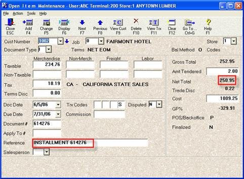 Note that the Reference field lists the installment number, and the Net Total is in the far right column. These fields can help you locate the correct Dated Billing document.