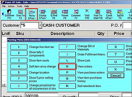 Click Menu (or press the dash (-) on the keypad), and select View Orders.