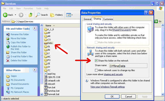 Right-click on the "Data" folder and select "Sharing and Security.” The Data Properties dialog displays. Note that some versions of Windows will have a slightly different look to this dialog.