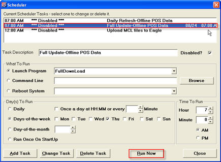 Click Full Update-Offline POS Data, then click Run Now. Allow the update to process; it could take a while.