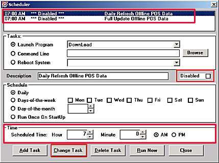 Use the following procedure to set up the Scheduler on your PC to automatically download, on a daily and monthly basis, the current offline files created when you run the Create Offline Refresh report (COR) (Note: COR may be running automatically in an end-of-day queue). You need only set this up once on each PC.