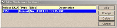 If you selected Adder Type S, follow the procedure described in the previous bullet, except that you'll be entering flat amounts instead of percents of subtotal.