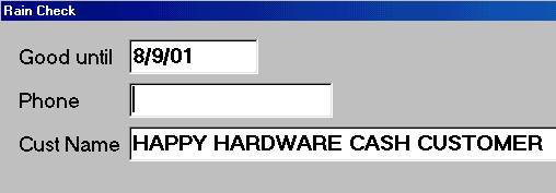 Click OK. On the Posting Screen, post the item(s) for which the customer wants a raincheck.